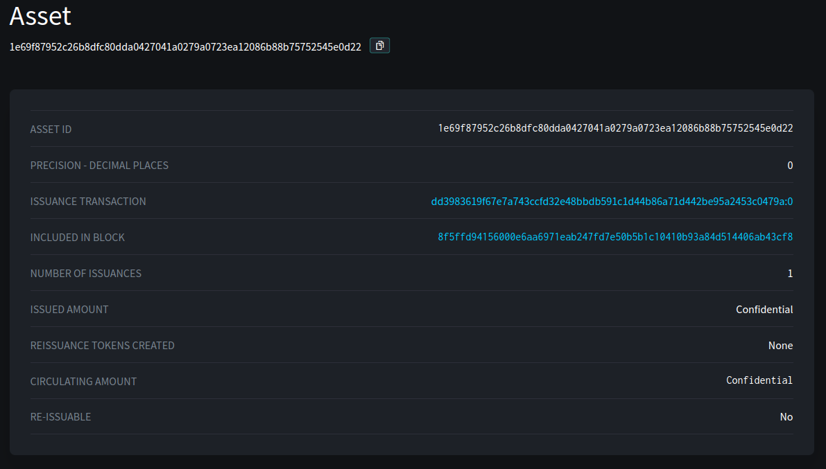 We can see our wallet has 10 of our assets4, lets checkout what the Liquid network knows about it: