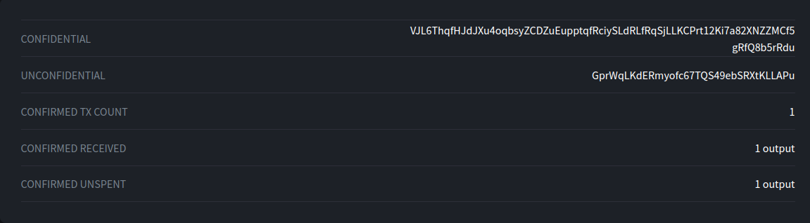 Let's try sending this new unblinded asset to another wallet (my Blockstream Green mobile wallet) and see what is visible on the network.