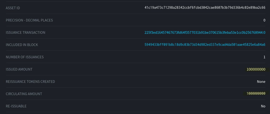 - We can see our wallet has 10 of our assets2, lets checkout what the Liquid network knows about it: