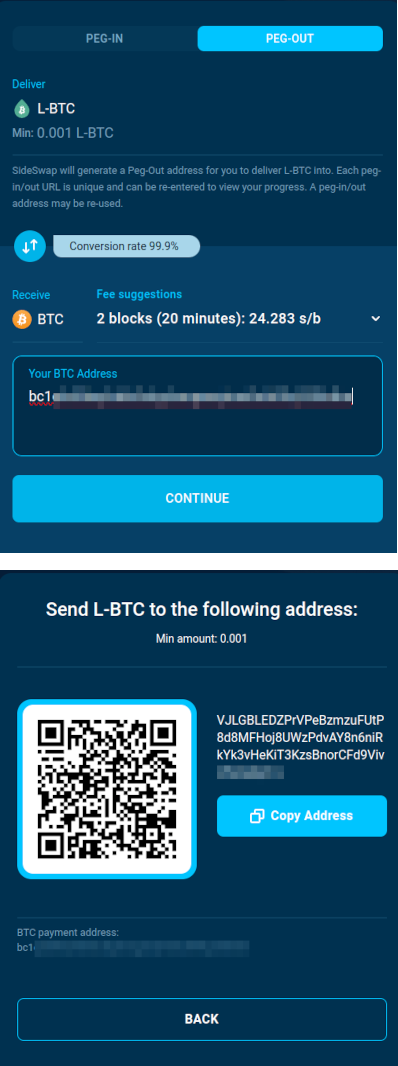 For my case, I want to go from Liquid -> BTC, so I will use sideswap.io as a demo.