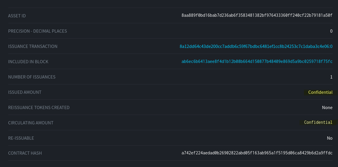 2. Technically just running elements-cli issueasset 10 0 is enough to issue an asset, however there will be limitations later on when trying to register the asset, burn, remove, etc. ↩︎